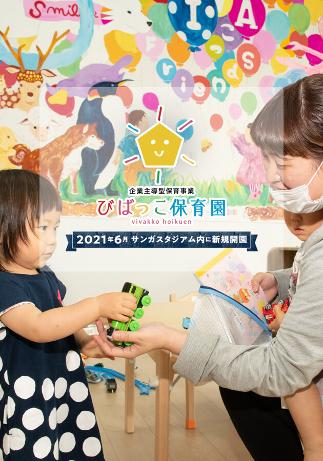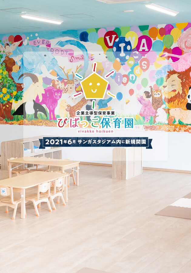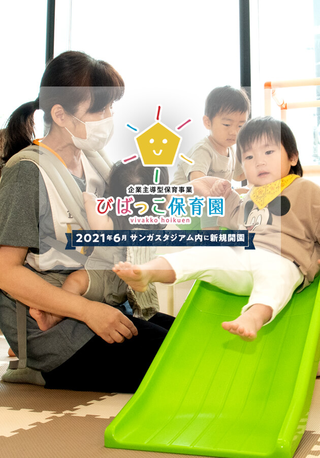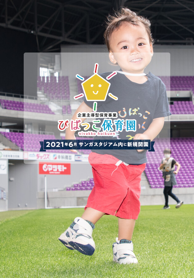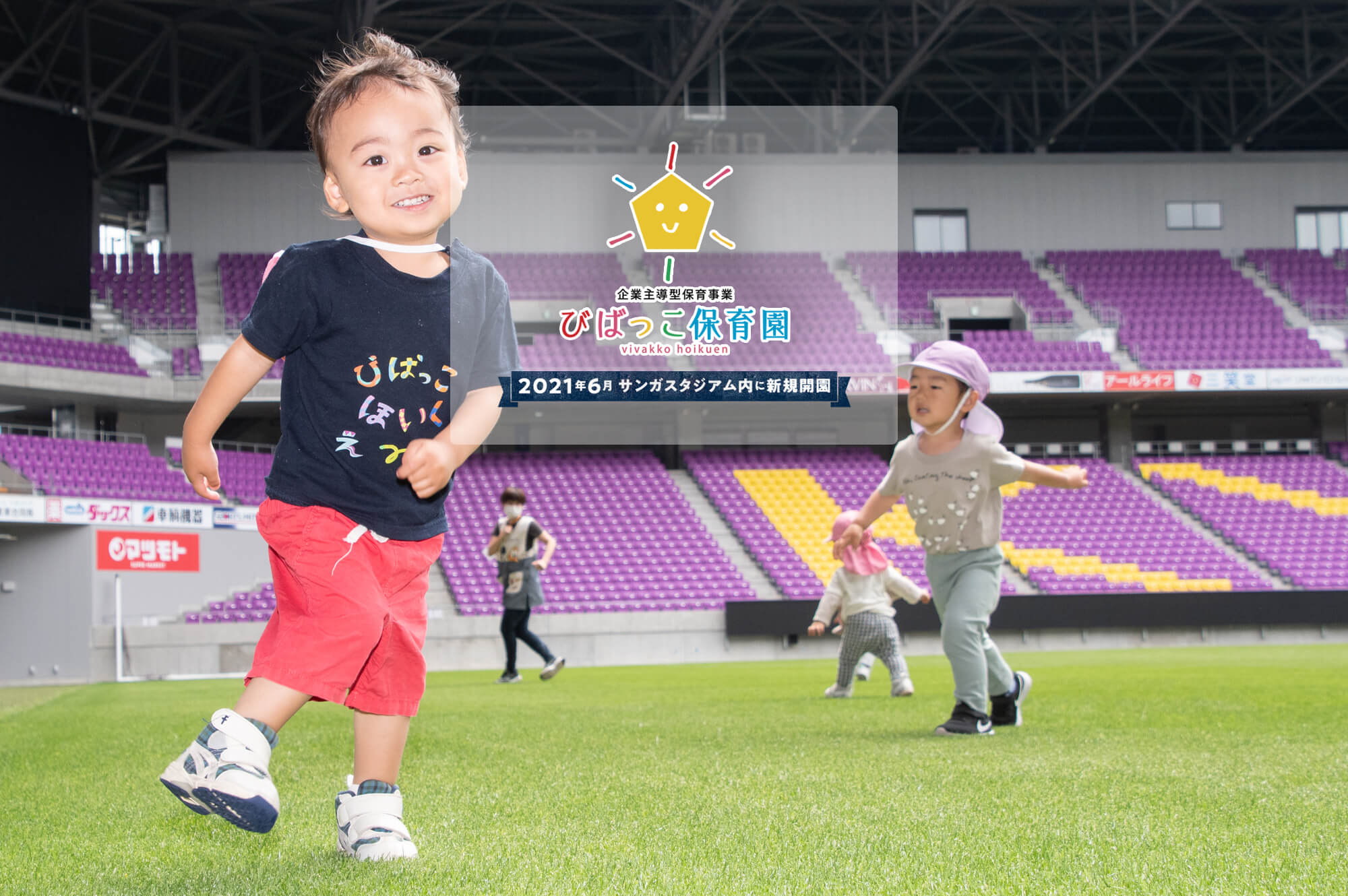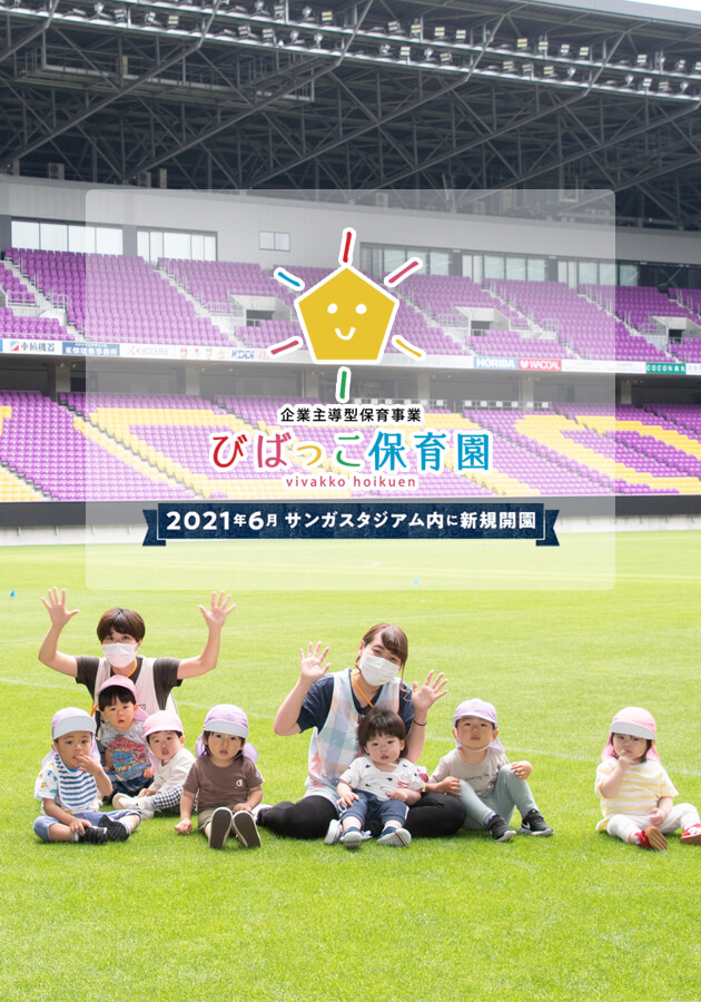 サンガスタジアムby KYOCERA内に2021年6月1日新規開園オープンした企業主導型保育園です。